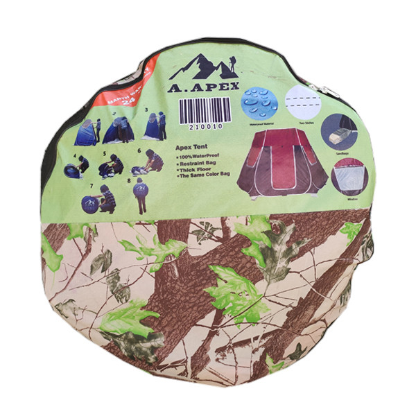 چادر ارتفاع بلند 12 نفره آپکس دارای دو در است دارای سه پنجره است کف چادر ، ضخیم است دارای کیف ست همرنگ و همجنس است دارای نواری ابریشم است دارای زیپ 10 است دارای توری حریر درجه یک در قسمت در و پنجره ها است دارای تهویه هوا است