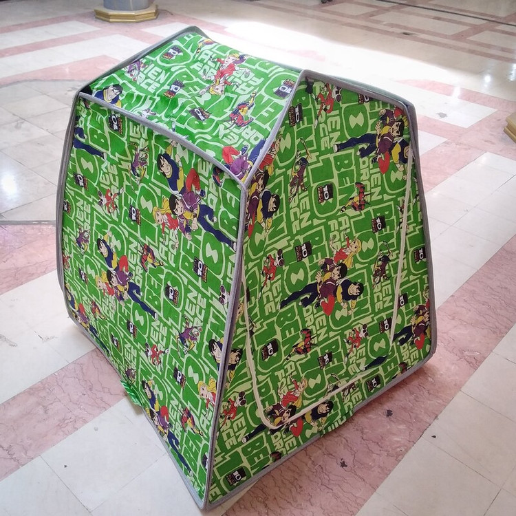 چادربازی تولید شده از پارچه مرغوب ومستحکم دارای یک در ب وپنجره جنس کف اسپاند ابعاد کف 120cmx120cm ارتفاع ۱۲0cm