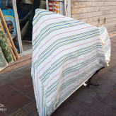این چادر از جنس برزنت نخی میباشد و در برابر آفتاب بسیار مقاوم است قابل شستشو در لباسشویی می باشد دارای حلقه هایی جهت مهار چادر میباشد لبه های پایین چادر کش محکم دوخته شده و مهار می شود