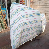 این چادر از جنس برزنت نخی میباشد و در برابر آفتاب بسیار مقاوم است قابل شستشو در لباسشویی می باشد دارای حلقه هایی جهت مهار چادر میباشد لبه های پایین چادر کش محکم دوخته شده و مهار می شود
