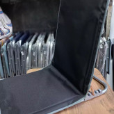 صندلی مسافرتی راحت نشین سایز بزرگ لوله ضخیم ۲۰/۹۰ لوله تکیه گاه ضخیمتر از صندلیهای معمولی ابعاد نشیمن گاه بزرگتر از معمول ابعاد تکیه گاه بزرگتر از معمول در عکس سایز معمولی و بزرگ کنارهم قابل تشخیص