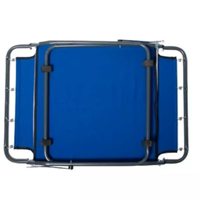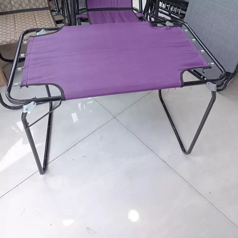 میز تاشو پارچه ای دارای پارچه برزنتی به همراه فوم و استر می باشد دارای دو عدد تسمه جهت قفل کن پایه و هشت فنر برای تیرینگ پارچه و میز می باشد جنس لوله فلز ضد زنگ ابعاد جمع شو میز 50×76 (ارسال سریع و کرایه پرداخت درب منزل )