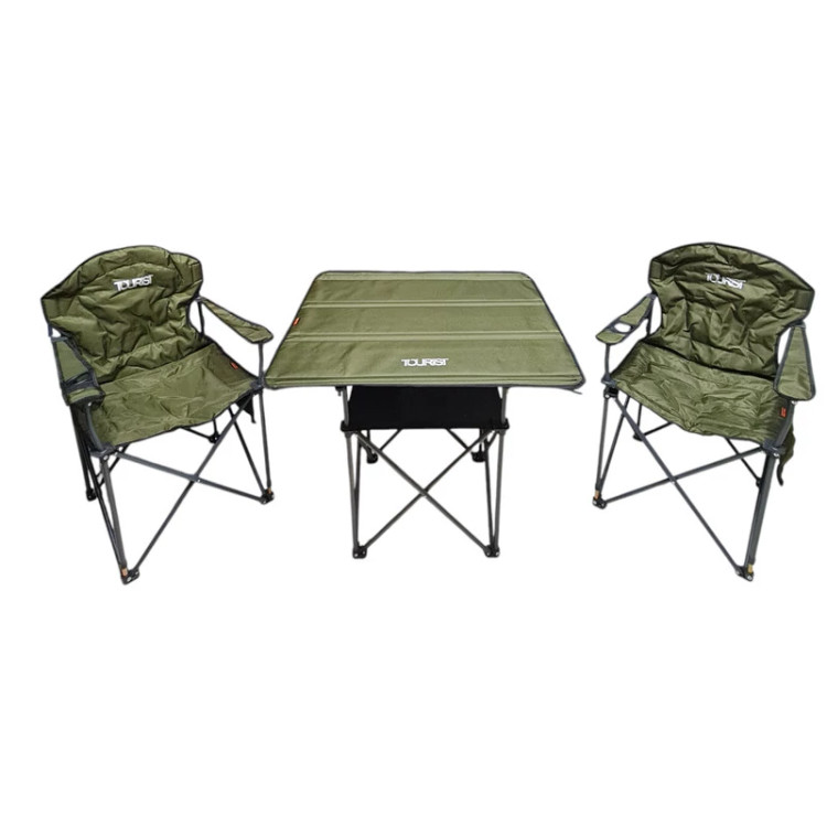 مجموعه سهتکه میز و صندلی سفری تاشو برند توریست مدل DS3 گزینهای مناسب برای استفاده در فضای باز، کمپینگ و سفرهای کوتاه است. این ست شامل یک میز و دو صندلی طراحی شده برای دو نفر است که حمل و نگهداری آسان آن به دلیل ساختار تاشو فراهم شده است. میز دارای ابعاد ۴۶×۴۶×۷۰ سانتیمتر و دو طبقه است و یک جیب جانبی برای قرار دادن وسایل ضروری روی آن تعبیه شده است. صفحه میز از جنس برزنت ساخته شده و استحکام کافی برای استفاده روزمره را ارائه میدهد. صندلیها ابعادی برابر با ۹۰×۵۰×۶۳ سانتیمتر دارند و فریم فلزی آنها با روکش برزنت پوشانده شده است. این طراحی باعث مقاومت در برابر وزن تا ۱۲۰ کیلوگرم برای هر صندلی شده است و سطح نشیمن راحتی را فراهم میکند. نصب ست بهصورت دستی انجام شده و جمع شدن آن بدون ابزار امکانپذیر است. جای دست و جای لیوان روی صندلیها استفاده از آنها را در طول استراحت یا وعدههای غذایی در طبیعت آسان میکند. وزن کل مجموعه ۱۱٫۲ کیلوگرم است و به راحتی در صندوق خودرو یا کولهپشتی بزرگ حمل میشود. با این مجموعه، کاربران میتوانند فضای استراحت منظم و کارآمد در محیطهای باز داشته باشند و از دوام و پایداری تجهیزات اطمینان حاصل کنند، در حالی که کاربرد و طراحی تاشو آن، حمل و نگهداری را به شکل ساده و عملی امکانپذیر میکند.