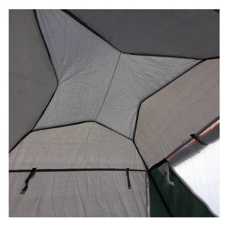 چادر مسافرتی اسکلتی ازبهترین و باکیفیت ترین پارچه حال حاضر برای دوخت چادر یعنی از پارچه برنو و با اسکلت بندی فنری قوی تولید شده است .و ضد آب می باشد .گنجایش چادر 8 نفره ذکر شده ولی طوری طراحی شده که گنجایش تا ده نفر نشسته را به راحتی در خود جای می دهد .ارتفاع آن بلند و دو متر می باشد و ابعاد آن 2.5 متر عرض و 2.5 متر طول می باشد. چادر اسکلتی از سه پنجره با پشه بند تولید شده و درب ورودی آن نیز دارای پشه بند است .کف این چادر ضخیم می باشد.شایان ذکر است کیف و کاور با کیفیت و جادار به همراه چادر عرضه خواهد شد.