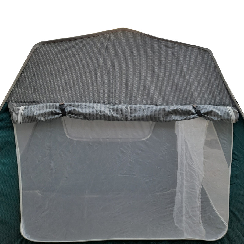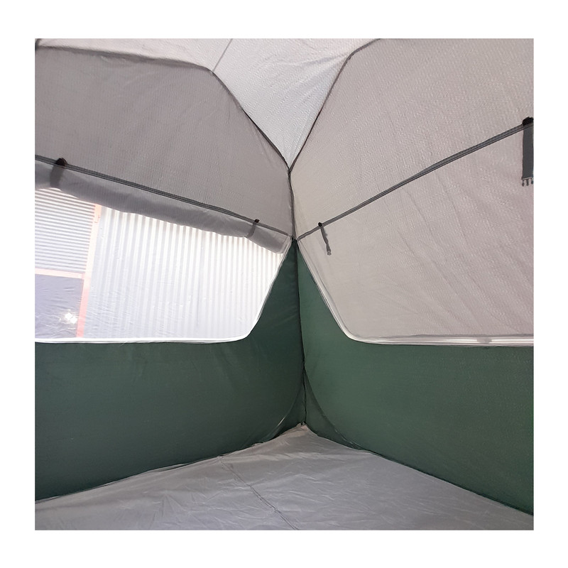 چادر مسافرتی اسکلتی ازبهترین و باکیفیت ترین پارچه حال حاضر برای دوخت چادر یعنی از پارچه برنو و با اسکلت بندی فنری قوی تولید شده است .و ضد آب می باشد .گنجایش چادر 8 نفره ذکر شده ولی طوری طراحی شده که گنجایش تا ده نفر نشسته را به راحتی در خود جای می دهد .ارتفاع آن بلند و دو متر می باشد و ابعاد آن 2.5 متر عرض و 2.5 متر طول می باشد. چادر اسکلتی از سه پنجره با پشه بند تولید شده و درب ورودی آن نیز دارای پشه بند است .کف این چادر ضخیم می باشد.شایان ذکر است کیف و کاور با کیفیت و جادار به همراه چادر عرضه خواهد شد.